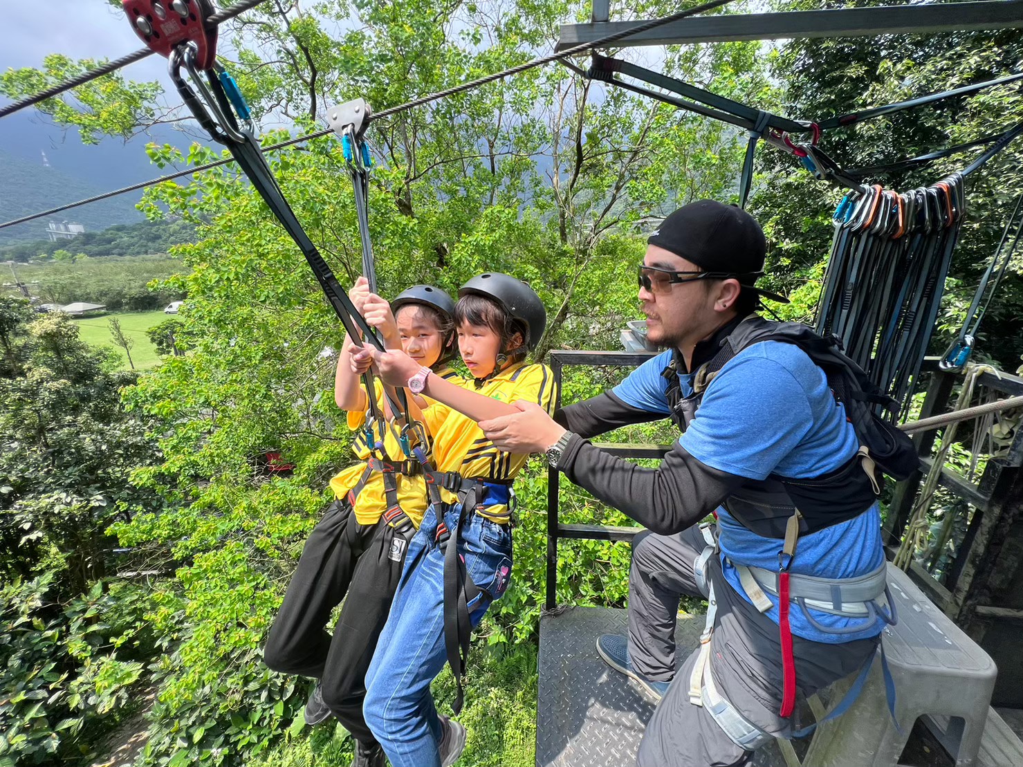 這條滑索全長108米,最高時速近七十公里,讓你在空中飛馳的同時感受到極速的刺激。使用法國原裝 PETZL 的兒童全身式安全衣,確保你在高空中享受快感的同時,也能安全無虞。